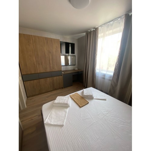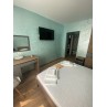 4-х местные номера (во всех корпусах, студия): санузел в номере, в каждом номере телевизор, холодильник, сплит-система, двуспальная кровать, односпальные кровати, кресло кровать или раскладной диван, шкаф, тумбочки, журнальный столик, зеркало. Допместо под запрос. Балкон под запрос (только в одном номере над кафе-столовой).