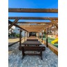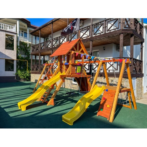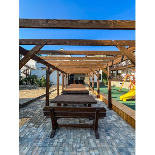 Бассейн под открытым небом 7/3м с современной очисткой воды. Благоустроенный внутренний двор: две беседки, шезлонги, столы, стулья, батут, качели, детская площадка.