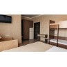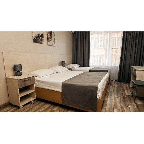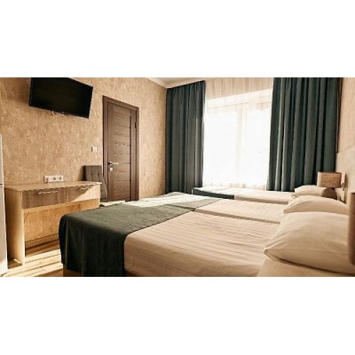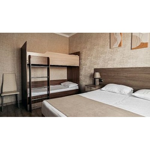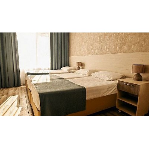 Размещение в уютных современных 3-х этажных корпусах-3-4-5-ти местные номера со всеми удобствами: односпальные кровати или двуспальные, диван-кровать или кресло-кровать, в некоторых номерах- двухъярусные кровати, необходимая мебель, сплит-система, телевизор, холодильник, санузел, душ. Балкон не во всех номерах. Есть 5- ти местный номер с кухней по запросу. Допместо по запросу.