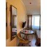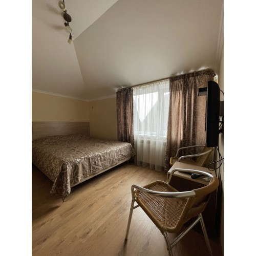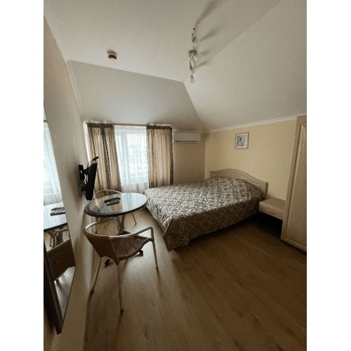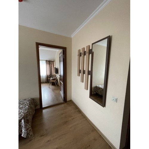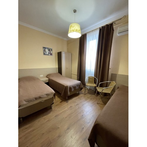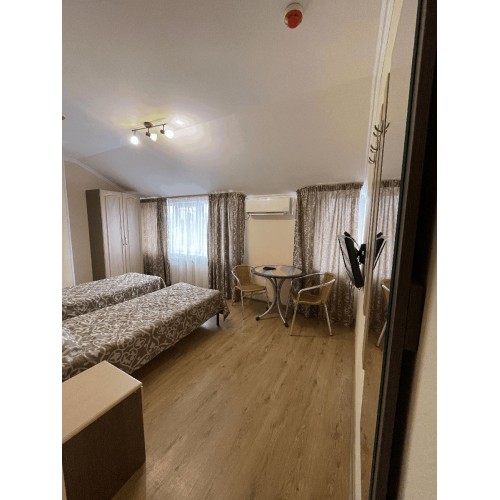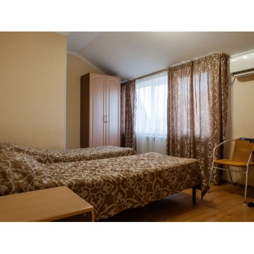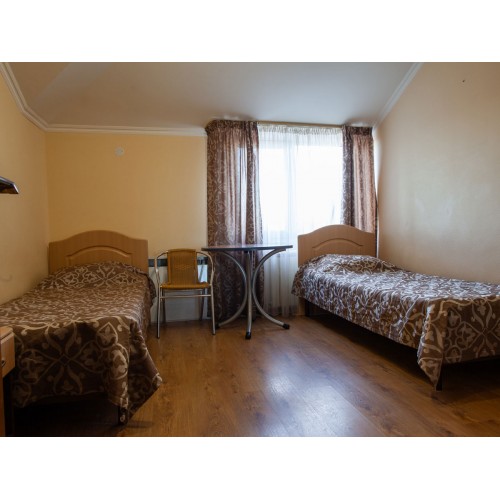 2-3-4-х местные номера стандарт: санузел в номере, односпальные (90 *200 ) или двуспальные кровати (160*200), шкаф, стулья, прикроватные тумбочки, стол, зеркало, кондиционер, телевизор, интернет, косметические принадлежности, комплект полотенец. Холодильники на этажах (в семейном –в номере). Дополнительное место- еврораскладушка.