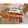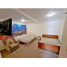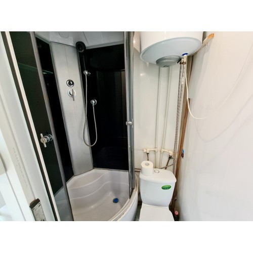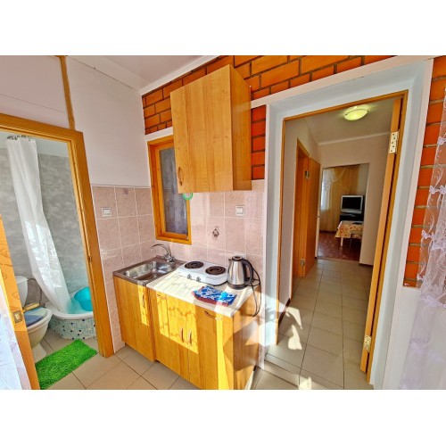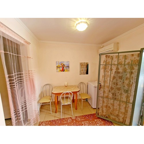 Водник № 65 (ФОТО 20-26): двадцать вторая дорожка, 150 м от пляжа, 3-х и 4-х местные номера на первом этаже. В комнате два двуспальных дивана, стол, стулья, шкаф, холодильник, микроволновка, кондиционер, телевизор, гладильная доска, утюг. На кухне необходимая мебель, стол, стулья, газовая плита, чайник, посуда. Совмещенный санузел: душевая кабинка, раковина, зеркало, водонагреватель, унитаз. Очень маленький по площади санузел и душевая!