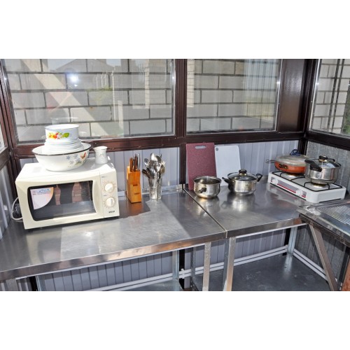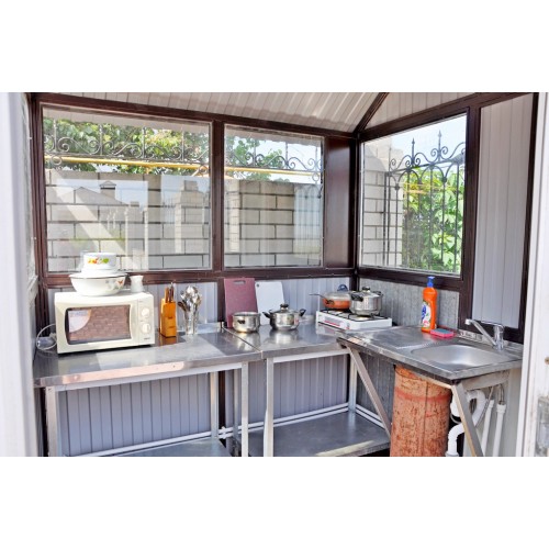 Питание: на территории гостевого дома имеется оборудованная всем необходимым кухня (мойка, газовая плита, микроволновка, набор посуды). Мангальная зона. В шаговой доступности есть множество кафе и ресторанов.