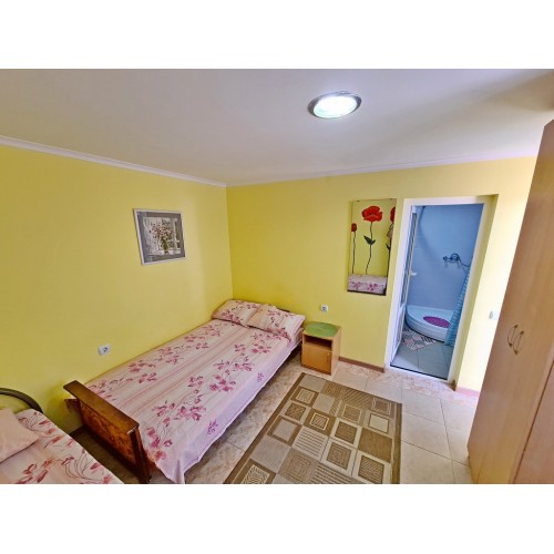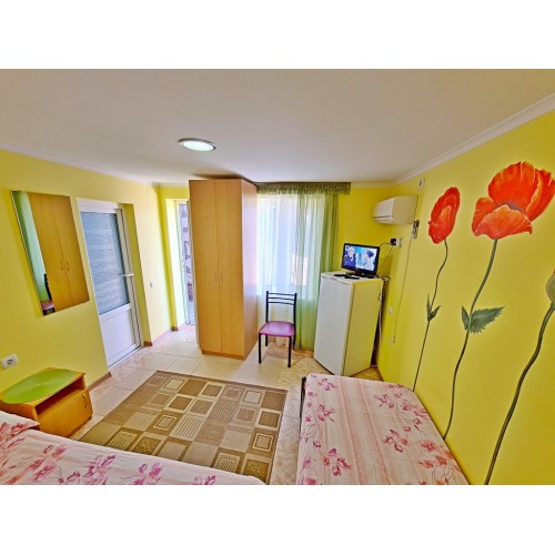 3-х (можно как 2-х) местный номер со всеми удобствами на первом этаже: односпальная и двуспальная кровати, необходимая мебель, сплит-система, телевизор, холодильник, санузел с душевой кабиной,фен.