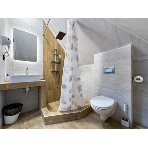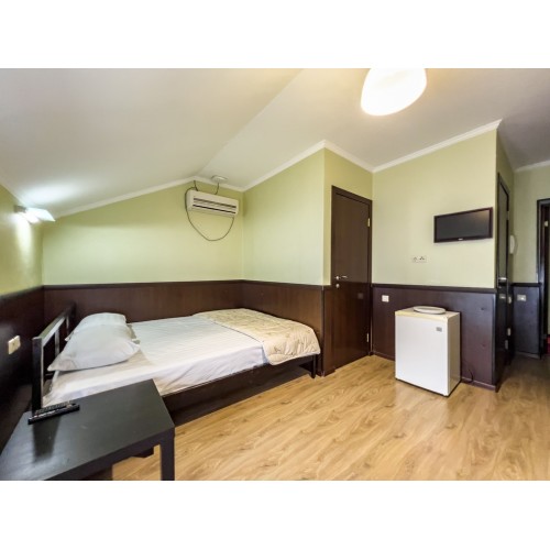 2-х местные номера, 1 корпус, 3 этаж, мансарда: санузел в номере, телевизор, холодильник, сплит-система, двуспальная или две односпальные кровати, необходимая мебель. Балкона нет!