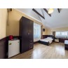 Двухкомнатные 4-х и 5-ти местные номера (1 и 2 корпус): санузел в номере, телевизор, холодильник, сплит-система, двуспальные или односпальные кровати, возможен раскладной диван, шкаф, тумбочки, журнальный столик, зеркало, межкомнатная дверь или арка. Дополнительное место предусмотрено под запрос. Балкона нет!